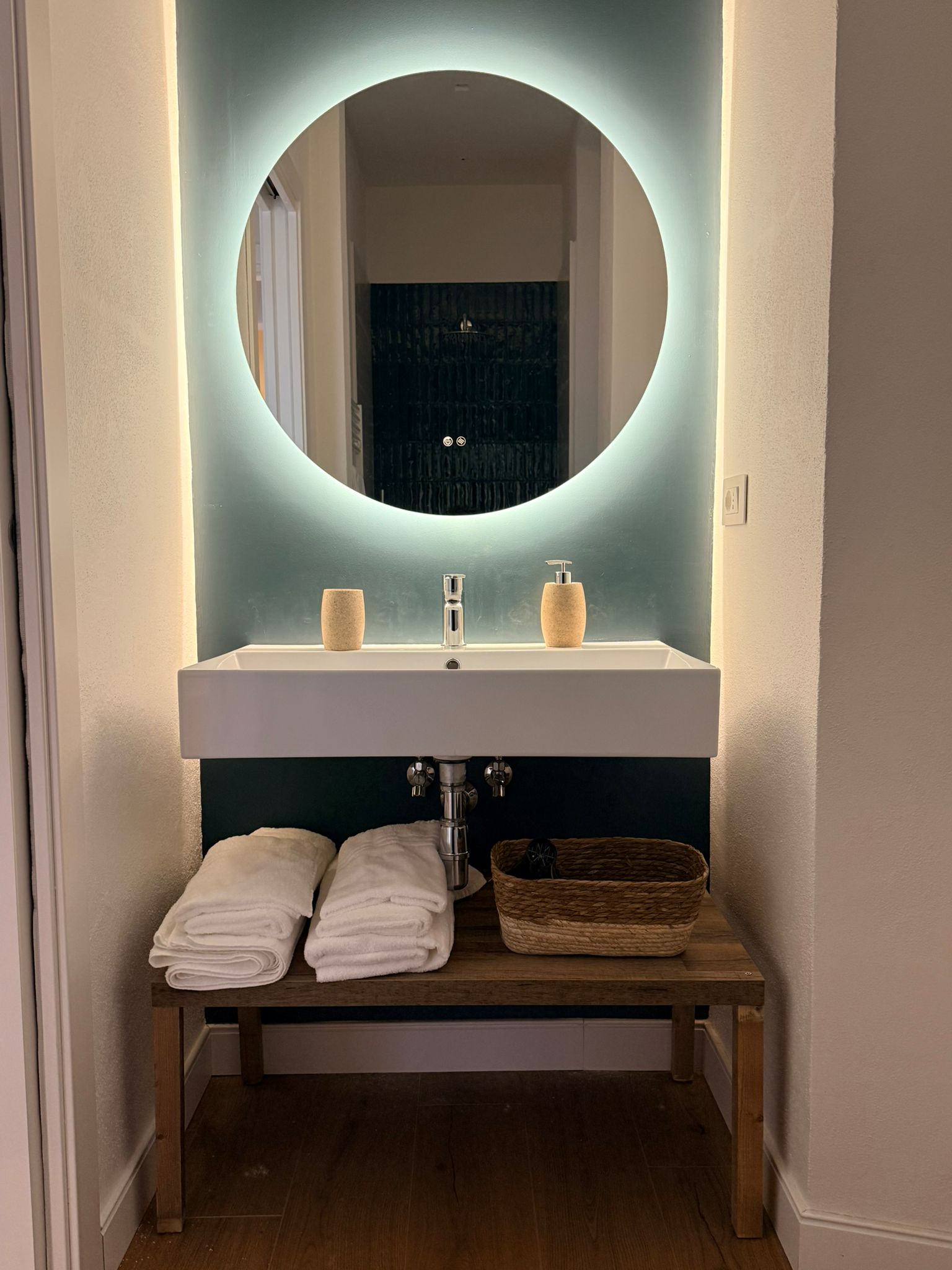 The bathroom is spacious and fully equipped, ensuring a comfortable and refreshing stay. Ideal for guests looking for a smart, welcoming space in a central location.