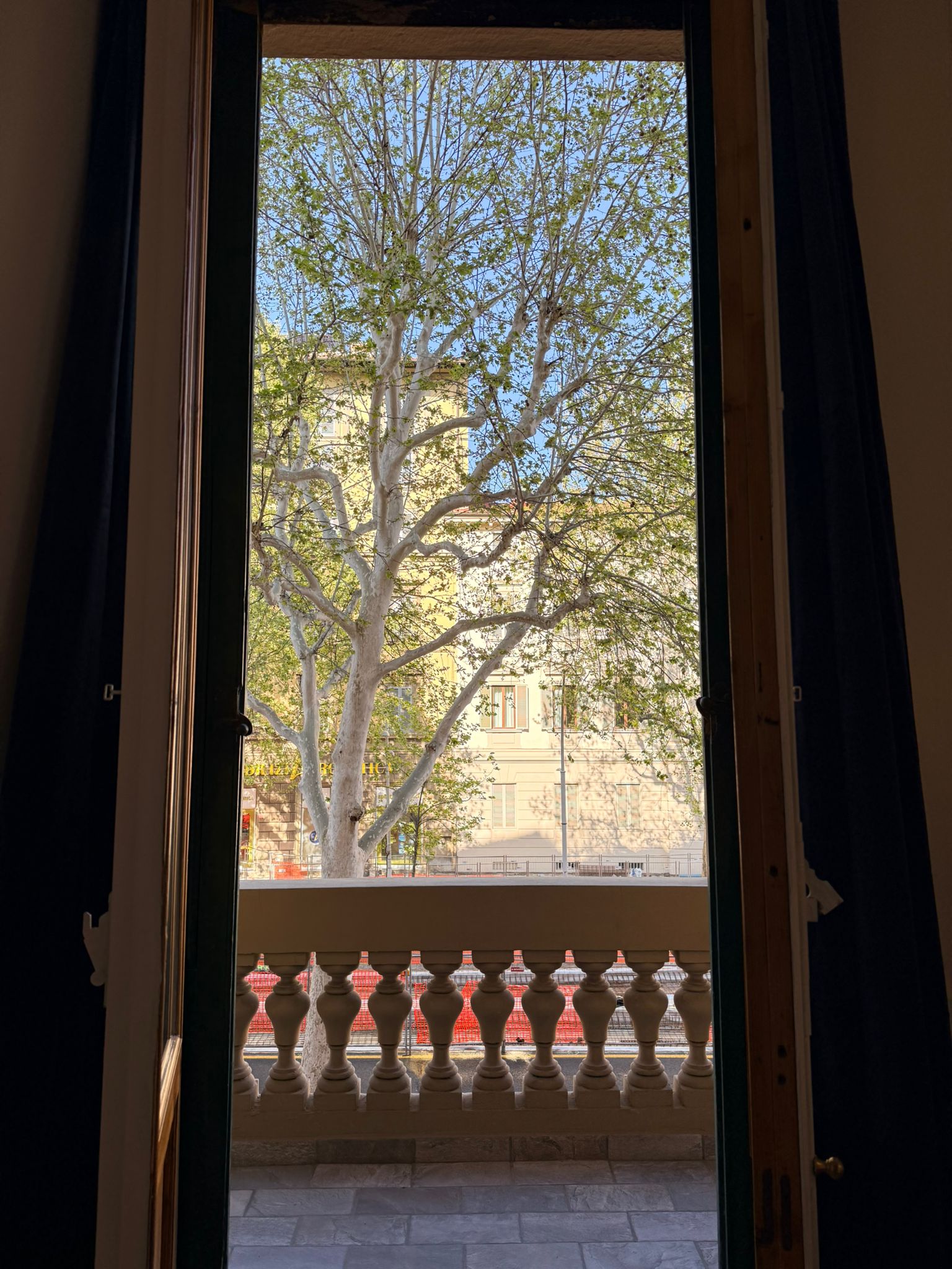 A true highlight is the private terrace overlooking the street — a valuable added feature for guests who enjoy an open and lively connection with the city.